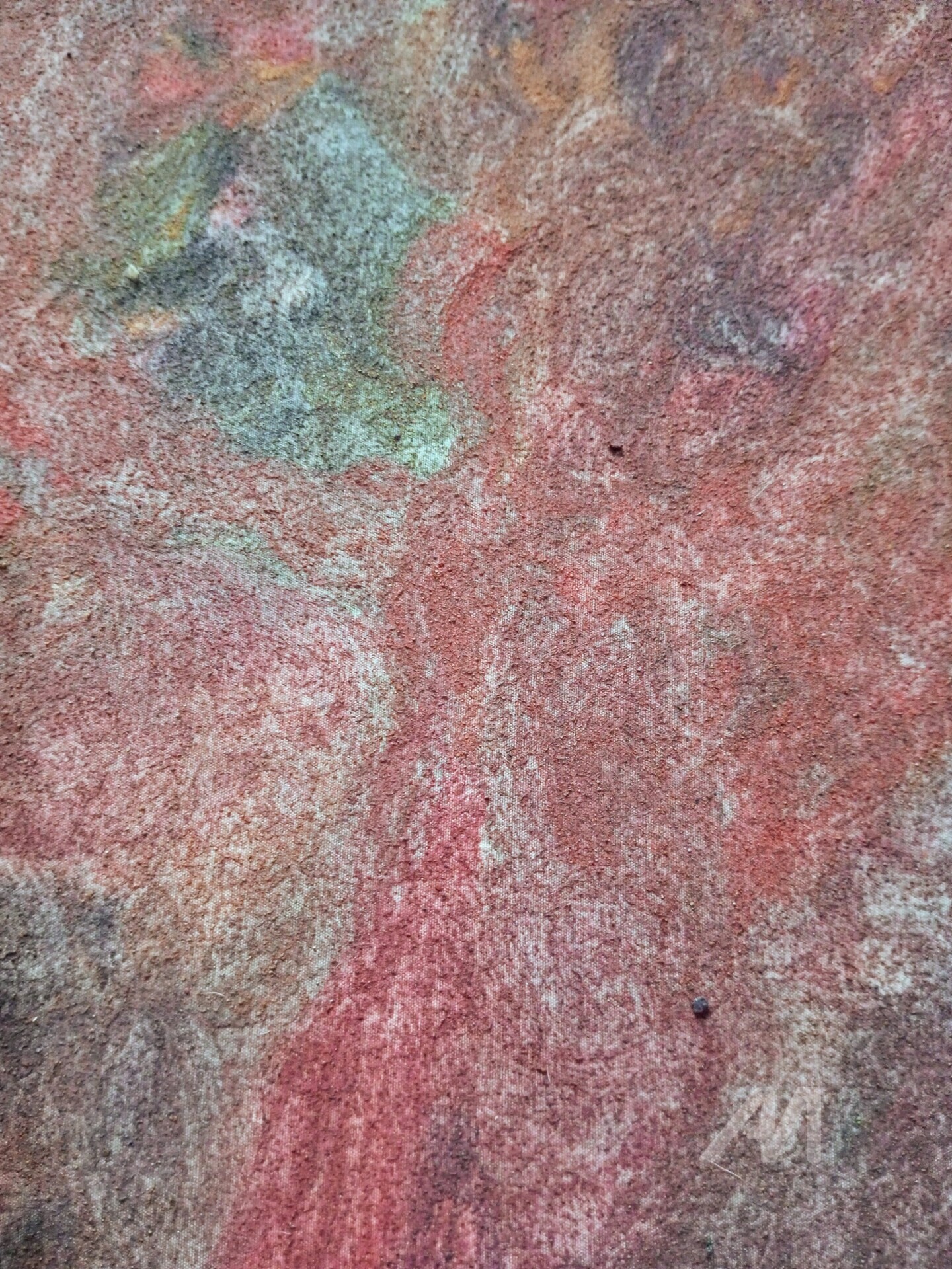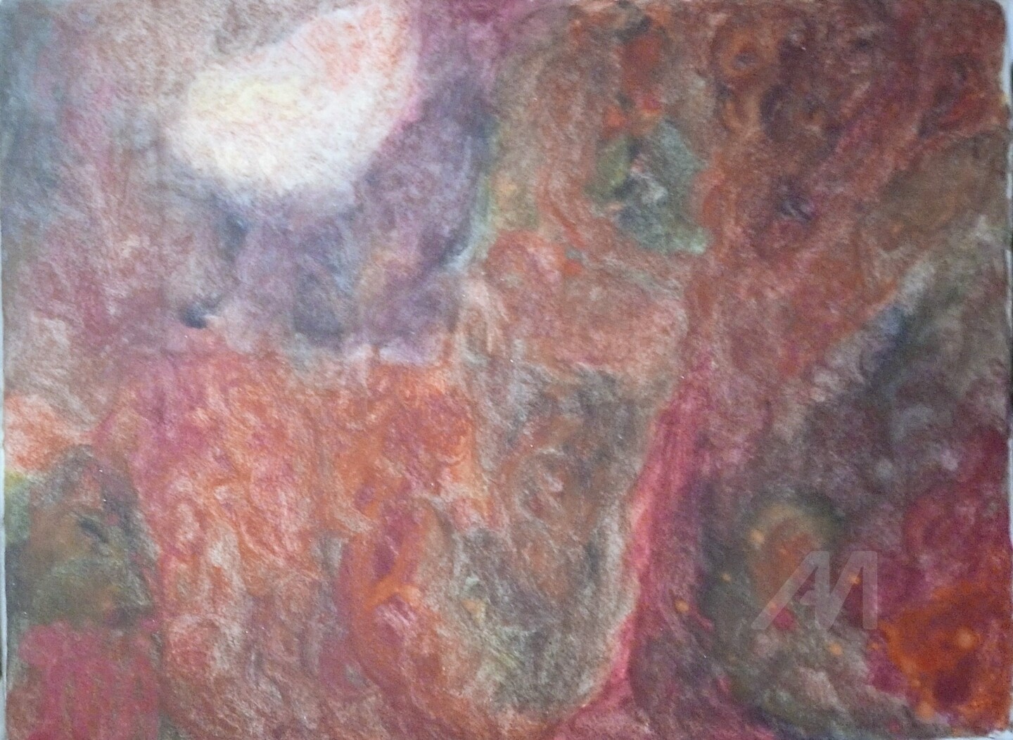 Neem Tree Goddess Dancing with the Waxing Moon Goddess and Creeper Plant Goddess self-made natural colours on cotton cloth